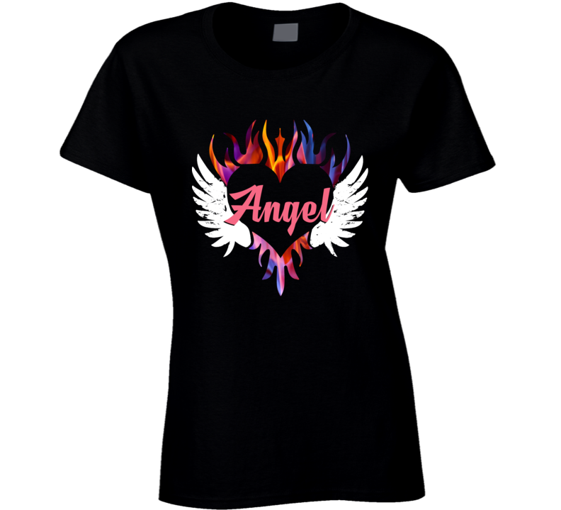 Angel Rainbow Heart Flame Wings Love Tattoo Look Custom Name T Shirt